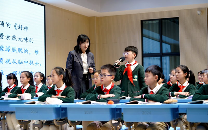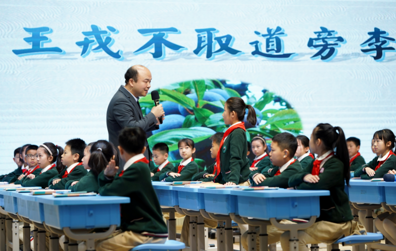 在活動第一階段,北京市海淀區(qū)實驗小學教師于明和北京市西城區(qū)康樂里小學教師范繼涵分別執(zhí)教了統(tǒng)編教材語文四年級上冊《王戎不取道旁李》和五年級上冊《憶讀書》。于明依據文言文特點,通過朗讀、想象等多種方式,引領學生讀通、讀懂、讀活文言故事,清晰呈現(xiàn)了先學后教、進階提升的學習過程。范繼涵緊扣“選”與“法”,引導學生通過自主、合作學習,梳理“好書標準”和“讀書之法”,并結合自己的讀書經歷回看作者的讀書觀,在研讀、梳理和整合中,學生逐步形成了自己對讀書的思考。