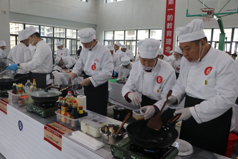 隨著比賽開(kāi)幕,17個(gè)學(xué)校參賽隊(duì)按照指定菜品與特色菜品展開(kāi)角逐,指定菜品以常規(guī)食材為主,制作一葷一素兩道菜,創(chuàng)新菜品由選手自帶食材自行創(chuàng)作。選手們運(yùn)用煎、炒、烹、炸、蒸、煮等傳統(tǒng)技術(shù)各展所長(zhǎng),過(guò)油、下料、顛鍋、調(diào)味、擺盤(pán),烹飪手法嫻熟,造型別具匠心,現(xiàn)場(chǎng)菜香四溢。隨著一道道菜品出鍋盛盤(pán),5名專家評(píng)委對(duì)每一道菜品色、香、味、型進(jìn)行品鑒,并給出綜合評(píng)分,全程比賽激烈、活潑,現(xiàn)場(chǎng)氛圍感“拉滿”。應(yīng)邀領(lǐng)導(dǎo)、嘉賓、師生圍著參賽選手操作,饒有興趣地觀摩,對(duì)他們高超技藝拍手稱快,并拍照留念。