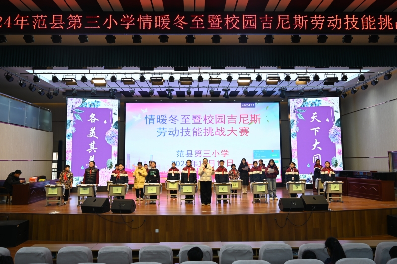 12月19日,范縣第三小學(xué)舉行情暖冬至暨校園吉尼斯勞動(dòng)技能挑戰(zhàn)大賽。本次活動(dòng)立足雙減,旨在加強(qiáng)學(xué)校勞動(dòng)教育,強(qiáng)化學(xué)生勞動(dòng)意識(shí)。該活動(dòng)涵蓋生活技能類、藝術(shù)創(chuàng)造類,共計(jì)800余名師生參與。
