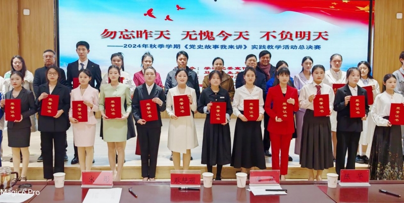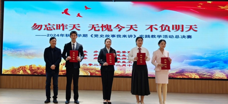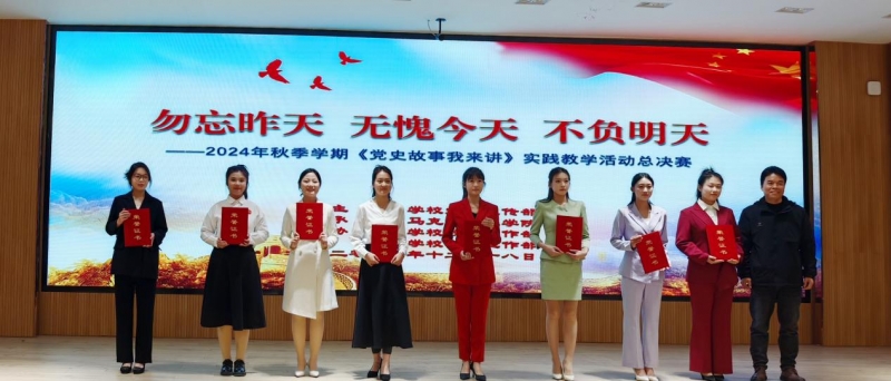 12月18日,開(kāi)封文化藝術(shù)職業(yè)學(xué)院思政課實(shí)踐教學(xué)活動(dòng)《黨史故事我來(lái)講》2024年秋季學(xué)期總決賽在四號(hào)報(bào)告廳舉行。校長(zhǎng)何新出席,黨委副書(shū)記王森,組織統(tǒng)戰(zhàn)部長(zhǎng)王國(guó)昌參加活動(dòng)并為選手頒獎(jiǎng),馬克思主義學(xué)院全體教師和各院部學(xué)生代表近200人現(xiàn)場(chǎng)觀看。
