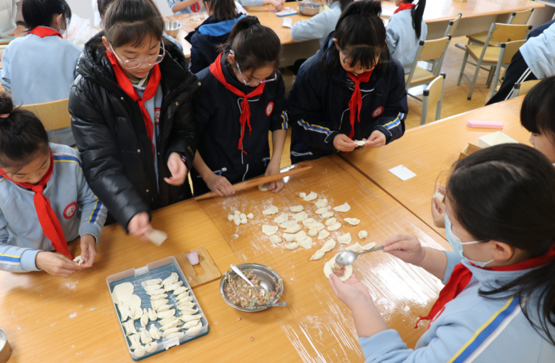 12月18日下午,鄭州市金水區(qū)文化路二小六年級(jí)一百多名師生和十余位家長(zhǎng)志愿者走進(jìn)學(xué)校食堂,開(kāi)展了冬至主題包餃子實(shí)踐活動(dòng),用最家常的煙火氣迎接冬至的到來(lái)。