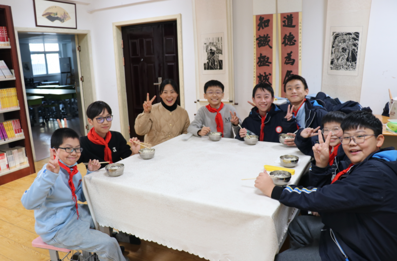 很快,香氣四溢的餃子新鮮出鍋。同學(xué)們有序地排著隊(duì),將碗遞給老師,一勺滿滿的餃子落入碗中,回到座位,開(kāi)啟了品嘗之旅。一碗餃子一片情,個(gè)個(gè)餃子暖人心。這餃子里有自己的辛勤勞動(dòng),吃著格外香。