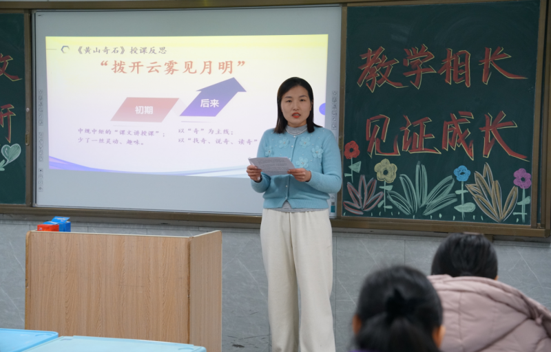 骨干教師李茹老師圍繞聽課、評課、上課切身體驗以“蛻變”、“種子”等關(guān)鍵詞,分享自己的成長與收獲,蛻變過程雖有不易,但也只有親身體驗了,才能品出這其中的甘甜滋味。一步步走來,層層推進,老師們真正做到了群策群力,共學(xué)共研,教學(xué)相長。