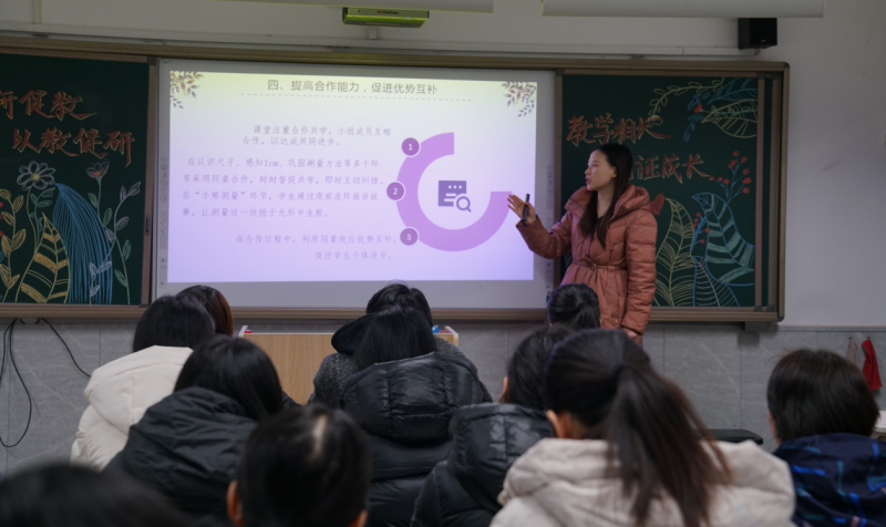 數(shù)學(xué)組圍繞徐嬌嬌老師執(zhí)教課例,從設(shè)計意圖、活動目標、活動過程等方面進行了研討。大家各抒己見,積極地表達自己的想法與建議,共同探討教學(xué)新方法、新思路、取人之長,補己之短,在學(xué)習(xí)中獲得提升。科學(xué)組觀摩徐老師《厘米的認識》后多次教研,針對不同年級學(xué)生特點設(shè)計教學(xué)方法;低年級用親和語腔和豐富表情調(diào)動情緒;中年級讓學(xué)生動手制作將抽象知識具象化;高年級則以編寫童話加深知識理解,為小學(xué)階段學(xué)生科學(xué)素質(zhì)發(fā)展規(guī)劃,提升綜合素養(yǎng)。