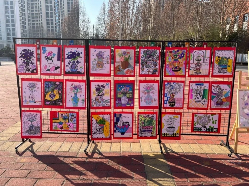 “花與瓶共舞”主題作品中,五年級學生用細膩的筆觸描繪出了花朵的嬌艷和瓶子的古樸。兩者相互映襯,美不勝收。