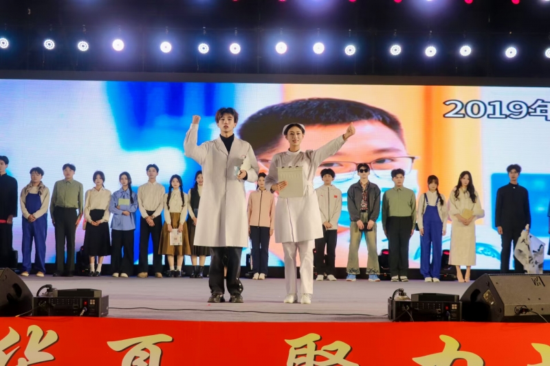 匯演開(kāi)始,將目光投向歷史的長(zhǎng)河,五四的火炬,點(diǎn)燃了時(shí)代的希望,情景劇表演《青年何為 何為青年》展現(xiàn)有理想、有擔(dān)當(dāng)?shù)那嗄炅α浚环b秀《百年黨史記憶—服飾變遷》用藝術(shù)形式生動(dòng)呈現(xiàn)建黨百年輝煌歷史,頌揚(yáng)中國(guó)人民的昂揚(yáng)斗志和自信姿態(tài);詩(shī)朗誦《燈火里的中國(guó)》以動(dòng)聽(tīng)而又飽含激情的聲音,展現(xiàn)了新時(shí)代中國(guó)的繁榮景象和人民生活的美好場(chǎng)景;情景劇《見(jiàn)字如面》展現(xiàn)了一封封紅色家書(shū)和家人之間心心念念的牽掛,更是紅色歷史舞臺(tái)上永不磨滅的印跡;國(guó)風(fēng)華服《秀出新時(shí)代的文化表達(dá)》將華服之美與藝術(shù)手法相結(jié)合,盡顯文化魅力和東方意蘊(yùn);歌曲《青春歌曲串燒》展現(xiàn)出漯醫(yī)學(xué)子的青春活力與風(fēng)采;情景劇《跨越時(shí)空的對(duì)話 這盛世如您所愿》、歌曲《一生摯愛(ài)》、舞蹈《萬(wàn)疆》、歌舞《共筑中國(guó)夢(mèng)》、詩(shī)朗誦《百年漯醫(yī) 薪火相傳》等節(jié)目以?xún)?yōu)美的舞姿和深情的朗誦,表達(dá)了師生對(duì)祖國(guó)和學(xué)校的深情厚意與真摯祝福……