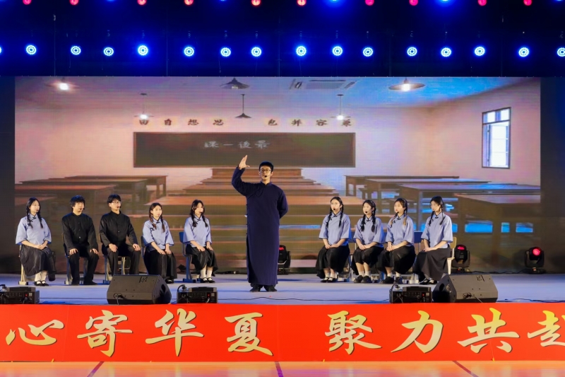 展演在激昂的《國(guó)際歌》中拉開(kāi)帷幕,整場(chǎng)晚會(huì)以時(shí)間為軸,分為“薪火-燃時(shí)代之光”“禮贊-頌中華之韻”“啟航-揚(yáng)復(fù)興之帆”三個(gè)篇章,匯聚了師生們精彩絕妙的表演,通過(guò)歌曲、舞蹈、情景劇、詩(shī)朗誦等表達(dá)形式,突出“理實(shí)一體”的深度嵌入與多維交融,展現(xiàn)了“思政+藝術(shù)”實(shí)踐育人模式,以藝術(shù)而生的心靈震撼和精神洗禮,推動(dòng)著青年學(xué)生在藝術(shù)陶冶和社會(huì)主義核心價(jià)值觀塑造中,浸潤(rùn)中國(guó)心、厚植愛(ài)國(guó)情。