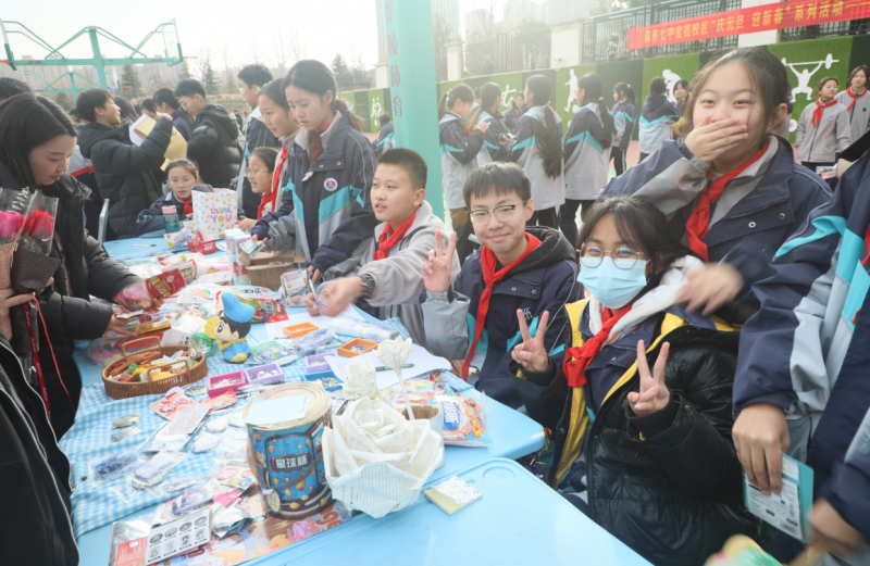 隨著主持人王子博老師激昂地宣布易趣節(jié)活動(dòng)正式開始,校園仿佛施了魔法一般,瞬間變成了一個(gè)熱火朝天、熱鬧非凡的超級(jí)集市。各個(gè)班級(jí)精心布置的攤位上,琳瑯滿目地?cái)[滿了各式各樣的商品。有現(xiàn)場(chǎng)制作的美味壽司、色彩斑斕的水果拼盤等充滿民俗風(fēng)情的小吃美食,散發(fā)著誘人的香氣;精美的手工藝品、創(chuàng)意十足的海報(bào)、知識(shí)豐富的書籍、可愛(ài)的毛絨玩具讓人目不暇接。還有那現(xiàn)場(chǎng)揮毫潑墨書寫的對(duì)聯(lián)、精巧細(xì)致的剪窗花等傳統(tǒng)技藝展示,無(wú)不彰顯著學(xué)生們的奇思妙想與非凡創(chuàng)意。學(xué)生們?cè)跀偽磺皻g快地忙碌著,熱情地招呼著顧客,此起彼伏的討價(jià)還價(jià)聲如同歡快的樂(lè)章,整個(gè)校園充滿了歡聲笑語(yǔ)。