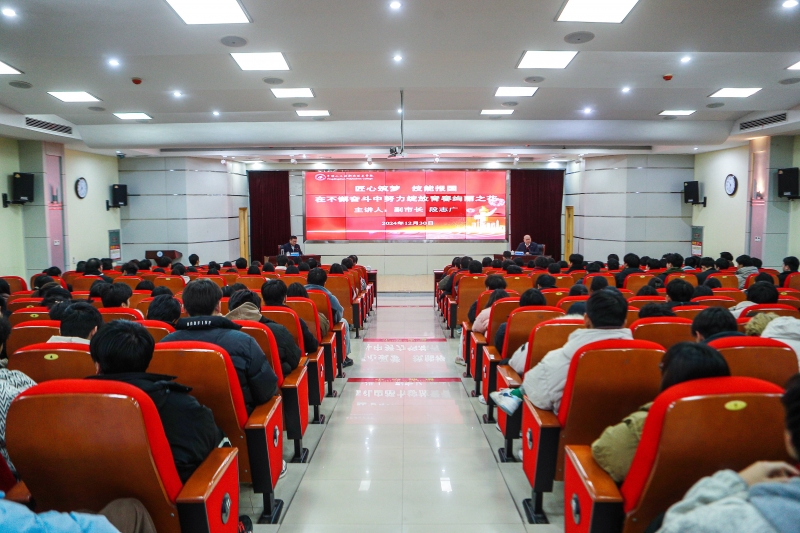 12月30日,平頂山市副市長段志廣走進平頂山工業(yè)職業(yè)技術(shù)學(xué)院,以《匠心筑夢、技能報國,在不懈奮斗中努力綻放青春絢麗之花》為題為該校師生講授思政課。該校黨委書記畢曉陽主持,學(xué)校黨委常務(wù)副書記、工會主席劉翱翔,全體思政課教師和學(xué)生代表近300人共同聆聽。