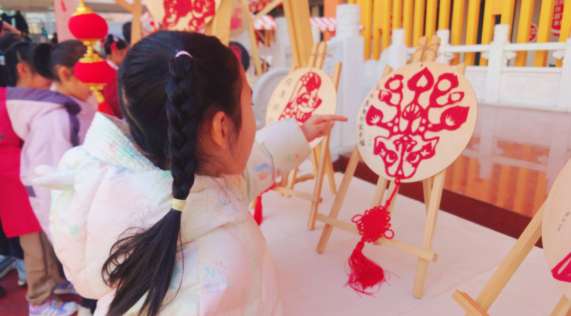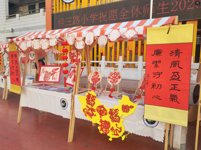 校園里也到處洋溢著濃厚的節(jié)日氛圍。新年創(chuàng)意作品琳瑯滿目,美不勝收。同學(xué)們緊扣迎新年的主題,通過繪畫、手工、剪紙、書法等多種藝術(shù)形式,營造出歡快、熱烈而又莊重的校園迎新文化氛圍,以此表達(dá)對新年的美好祝愿。各班教室里掛滿了學(xué)生們?yōu)橛有履甓牡褡恋乃囆g(shù)作品。操場上,各年級的優(yōu)秀美術(shù)作業(yè)被巧妙布置,匯聚成一幅幅新春的絢麗畫卷。此外,來自喜紋樂剪、扶墨丹青、我型我塑、塑說銅顏等美術(shù)社團的學(xué)生們也競相展示自己的佳作,作品風(fēng)格各異,獨具匠心。展覽現(xiàn)場,游覽的學(xué)生們積極參與互動,在欣賞與體驗中發(fā)現(xiàn)美、探尋美、感受美、創(chuàng)造美。