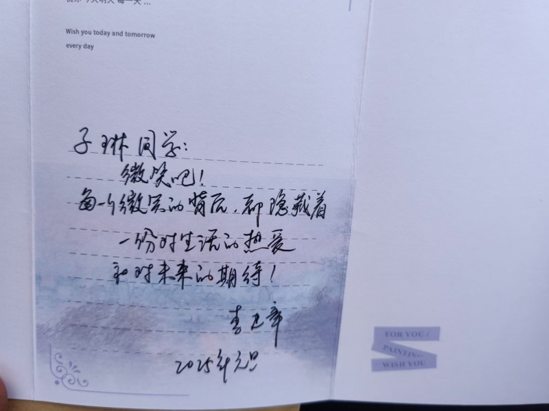 “子琳同學(xué),微笑吧!每一個(gè)微笑的背后,都隱藏著對(duì)生活的熱愛(ài)和對(duì)未來(lái)的期待!李建章,2025年元旦”泗店鄉(xiāng)九年一貫制學(xué)校學(xué)生周子琳收到賀卡,小心翼翼的開啟,看著這些文字,眼眶噙滿滾燙的熱淚。