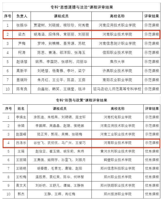 近日,中共河南省委教育工委辦公室、河南省教育廳辦公室下發(fā)了《關(guān)于高校思政課優(yōu)秀課程資源評(píng)審結(jié)果的公示》。河南職業(yè)技術(shù)學(xué)院馬克思主義學(xué)院申報(bào)的2門(mén)課程獲評(píng)示范課程,4門(mén)示范“金課”榮獲特等獎(jiǎng),創(chuàng)歷史最佳成績(jī)。