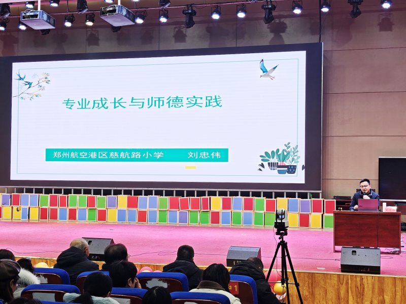 2月9日上午,河南省教書育人楷模、中原英才計劃領(lǐng)軍人才、中原名師、鄭州航空港區(qū)慈航路小學(xué)校長劉忠偉以《專業(yè)成長與師德實踐》為題進行講座。劉忠偉憑借自身豐富的教育實踐經(jīng)歷,對教師專業(yè)成長與師德實踐的關(guān)系展開了鞭辟入里的探討。他從教師專業(yè)成長的路徑講起,針對不同教齡階段的教師特點,提出了個性化的發(fā)展建議。談及師德實踐,他分享了一個個在校園里真實發(fā)生的故事,生動地詮釋了師德的內(nèi)涵,讓教師們深刻認識到,師德體現(xiàn)在與學(xué)生相處的每一個瞬間,體現(xiàn)在對學(xué)生的尊重、理解與關(guān)愛。