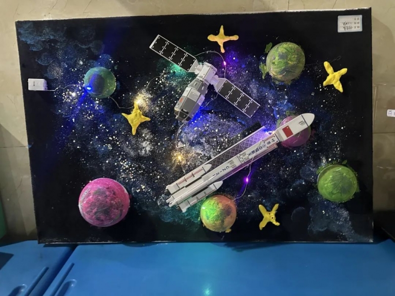 廟會(huì)活動(dòng)內(nèi)容豐富多樣,包括科技作品展示、美術(shù)作品展、美食展位等。科技作品展示區(qū),不同年級(jí)的學(xué)生展示了各自年級(jí)主題的科技作品,這些作品不僅體現(xiàn)了學(xué)生們的創(chuàng)新思維和實(shí)踐能力,也展示了學(xué)校在科技教育方面的豐碩成果。