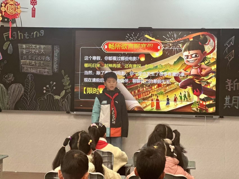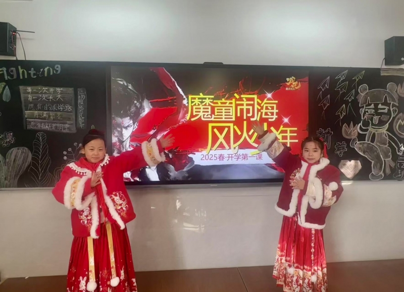 隨后,各班將“哪吒精神”與班規(guī)紀律、安全教育相結(jié)合,為學生注入新學期的成長力量。一一班班主任李曉歡老師在課堂上帶領(lǐng)學生學習哪吒勇敢、擔當、合作的優(yōu)秀品質(zhì),解讀哪吒“我命由我不由天”的精神內(nèi)核。孩子們深受啟發(fā),紛紛表示將在新學期中像哪吒一樣,修煉學業(yè),與同學攜手共進,在知識海洋里破浪前行。