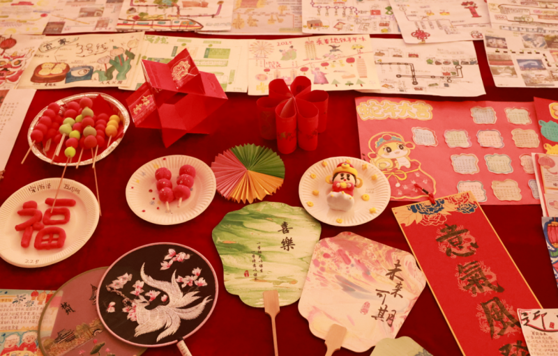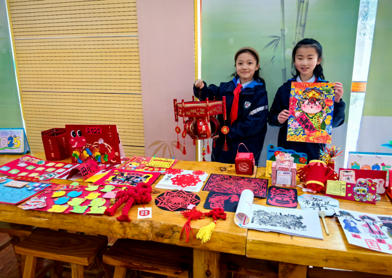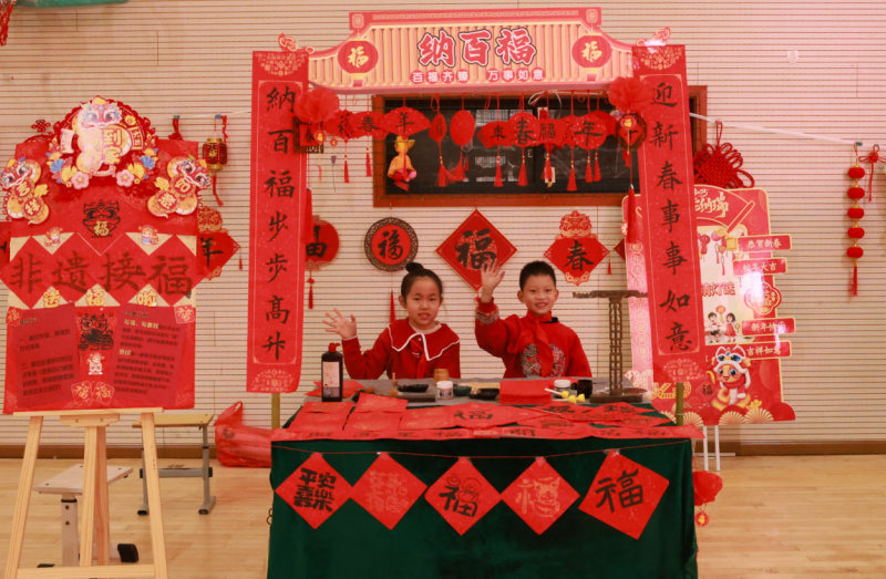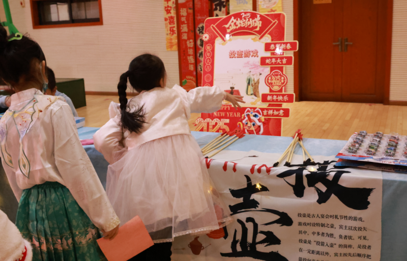 祭祖、拜年、貼春聯(lián)、逛廟會、賞中華戲曲、嘗傳統(tǒng)美食……這些藏在非遺里的中國故事,正以從容姿態(tài)走向世界。寒假期間,同學們參與其中,既過辭舊迎新的“時間之年”,更過向上向善的“文化之年”。在年俗文化設計展區(qū)域,匯聚了眾多精美的非遺作品,這些作品不僅展現(xiàn)了同學們對春節(jié)傳統(tǒng)文化的獨特理解和創(chuàng)新設計,更彰顯了他們對非遺文化的熱愛與傳承。互動體驗區(qū)和熱鬧街市區(qū)更是將活動推向了高潮,同學們在雜貨小鋪里挑選心儀的商品,在冰糖葫蘆攤位前品嘗甜蜜的滋味,在畫蛇添福活動中感受傳統(tǒng)文化的樂趣,在投壺、拓印、猜燈謎等互動交流中傳承中華民族的文化基因。