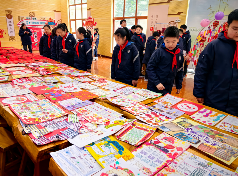 新學期開啟之際,一場別開生面的寒假主題作業(yè)展在金水區(qū)文化綠城小學校園里拉開帷幕。學校依據(jù)“雙減”政策,統(tǒng)籌規(guī)劃,科學安排,將寒假作業(yè)與“非遺”“地鐵”元素巧妙融合,精心設計了“坐著地鐵尋年味兒”主題寒假作業(yè)。此次作業(yè)展以“非遺里的中國年”為主題,設置“年知識小講堂”“年俗文化設計展”“非遺作品展”“互動體驗區(qū)”“熱鬧街市區(qū)”等不同單元,通過班級和校級兩個層面,全方位、多角度地展示學生寒假作業(yè)成果。