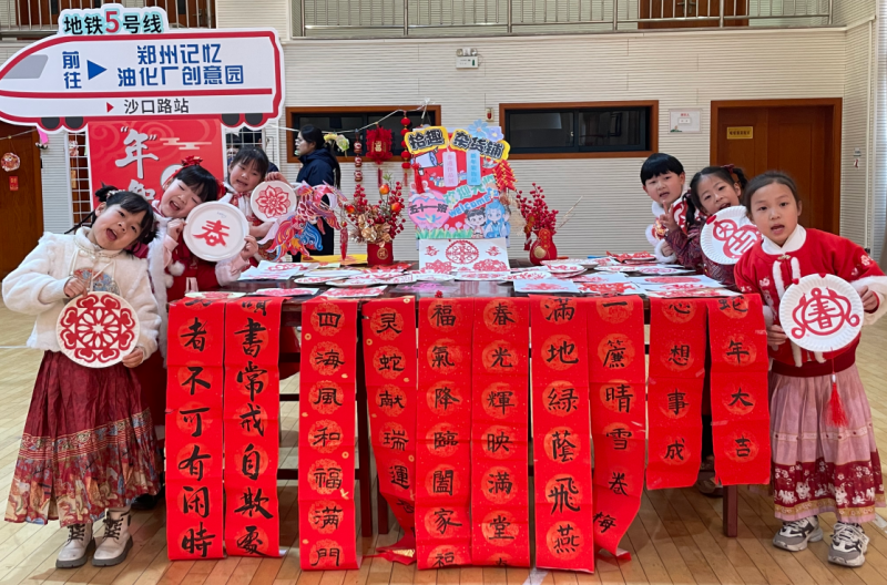 寒假期間,同學們自主規(guī)劃鄭州地鐵線路圖,穿梭于各個站點之間,親身感受沿線豐富多彩的年俗活動。乘坐地鐵3號線,鄭州文廟站的火龍舞表演中,金紅綢緞在鐵花星雨里翻騰;乘坐地鐵8號線,綠博園站絢麗多彩的花燈展,綻放藝術的魅力;乘坐地鐵10號線,二砂文化創(chuàng)意園的泥塑臺前,孩子們正捏著胖墩墩的泥泥狗;乘坐地鐵5號線,鄭州記憶油化廠創(chuàng)意園的廟會上,剪紙、糖畫傳遞傳統(tǒng)文化的細膩;乘坐地鐵4號線或6號線,人潮涌動的金融島站,1600℃以上的鐵水潑向夜空,綻放非遺里的璀璨星辰……同學們沉浸在這些地鐵串聯(lián)的文化站點,在傳統(tǒng)習俗里感受濃濃的非遺年味。