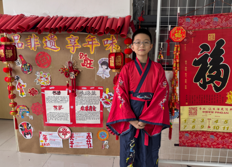 為弘揚傳統(tǒng)文化,加深學生對中國傳統(tǒng)節(jié)日的理解與熱愛,老師們別出心裁地設立了“年”知識小講堂這一主題區(qū)域。同學們滿懷激情地化身為非遺春節(jié)代言人,通過細膩生動的繪畫、飽含深情的文字、條理清晰的研究報告、真實記錄的照片以及動態(tài)直觀的視頻等形式,全方位、多角度地講述了春節(jié)的由來、習俗和傳說,生動地揭示了“過年”這一傳統(tǒng)節(jié)日所蘊含的奧秘和魅力。