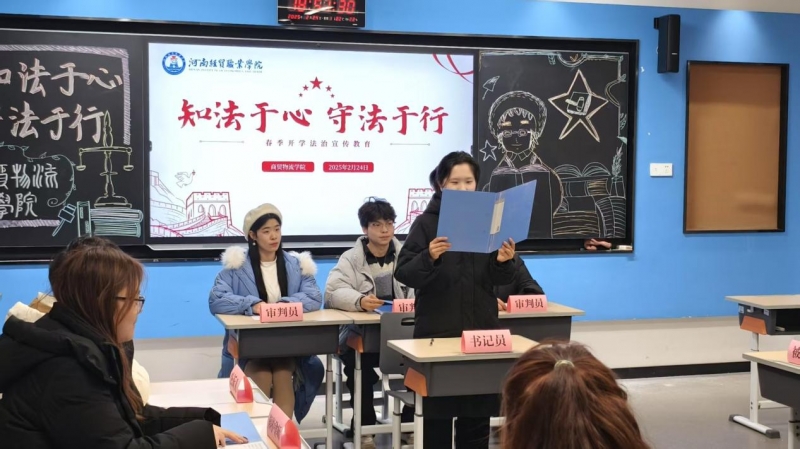 為深入貫徹新時(shí)代法治思想,全面提升青年學(xué)子法治素養(yǎng),河南經(jīng)貿(mào)職業(yè)學(xué)院商貿(mào)物流學(xué)院于2月16日至2月23日開(kāi)展了以“弘揚(yáng)法治精神,共建和諧校園”為主題的法治教育宣傳周活動(dòng)。本次活動(dòng)創(chuàng)新構(gòu)建“沉浸式+互動(dòng)式+體驗(yàn)式”三維教育矩陣,覆蓋全院18個(gè)班級(jí)1000余名師生,取得顯著成效。