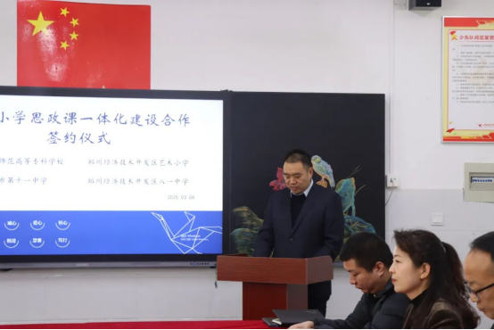 為深入貫徹習(xí)近平總書記關(guān)于思政課建設(shè)的重要指示批示精神,落實(shí)黨的二十屆三中全會(huì)和《教育強(qiáng)國(guó)建設(shè)規(guī)劃綱要(2024-2035)》關(guān)于“推進(jìn)大中小學(xué)思政課一體化建設(shè)改革創(chuàng)新”的重要戰(zhàn)略部署,3月4日,鄭州幼兒師范高等專科學(xué)校與鄭州市第十一中學(xué)、鄭州經(jīng)濟(jì)技術(shù)開發(fā)區(qū)八一中學(xué)和鄭州經(jīng)濟(jì)技術(shù)開發(fā)區(qū)藝術(shù)小學(xué)在鄭州經(jīng)濟(jì)技術(shù)開發(fā)區(qū)藝術(shù)小學(xué)舉行了“大中小學(xué)思政課一體化建設(shè)合作簽約儀式”。