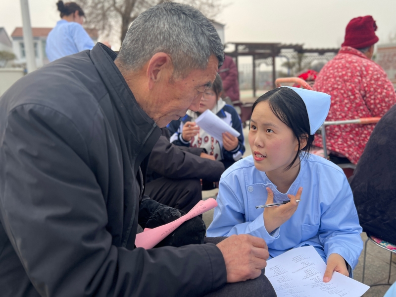 活動現(xiàn)場,學(xué)生們精心設(shè)計了測量血壓、健康知識宣講、防摔倒演練、跳健身操、問卷調(diào)查等多個環(huán)節(jié),全方位關(guān)注老人的身體健康和生活需求。在米屯村黨群文化廣場,學(xué)生們認(rèn)真為老人檢測血壓,對于血壓稍高的老人,他們耐心叮囑飲食和作息的注意事項,并主動交換聯(lián)系方式,以便后期跟蹤回訪,這一貼心舉動讓老人們倍感溫暖。