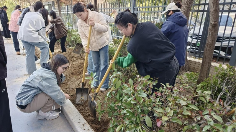 樹苗扎根展新綠:國際學院、管理學院邀請專家指導,分工協(xié)作,一棵棵樹苗扎根土地。