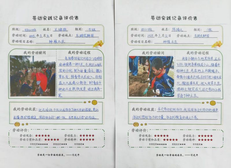 同學(xué)們認(rèn)真記錄了當(dāng)天的勞動(dòng)過程,交流挖坑的技巧、施肥的心得,分享了勞動(dòng)中的感悟。成為孩子們寶貴的成長(zhǎng)經(jīng)驗(yàn)。