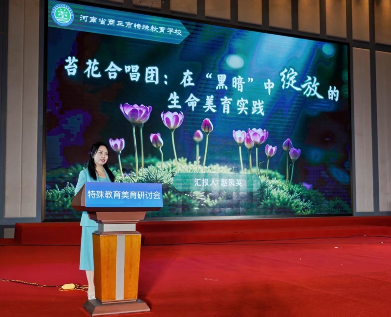 我省商丘市特殊教育學(xué)校、濮陽(yáng)市特殊教育學(xué)校、駐馬店市博愛(ài)幼兒園被授予“特殊教育美育實(shí)踐基地”。商丘市特殊教育學(xué)校黨支部書記、校長(zhǎng)趙鳳英,濮陽(yáng)市特殊教育學(xué)校副校長(zhǎng)祁學(xué)軍分別以《苔花合唱團(tuán):在“黑暗”中綻放的生命美育實(shí)踐》《聾校藝術(shù)教育實(shí)踐與思考》為題做典型發(fā)言。
