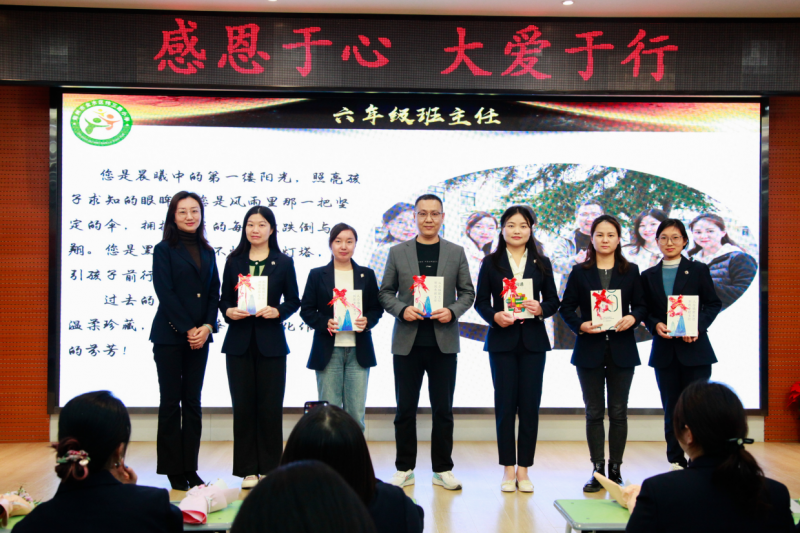 溫情時刻不斷上演,各班學(xué)生代表精心準(zhǔn)備祝福與禮物獻(xiàn)給班主任,感恩他們的日夜操勞。年級負(fù)責(zé)領(lǐng)導(dǎo)送上深情的寄語和厚厚的書籍,為班主任們的專業(yè)成長助力。班主任代表徐麗霞老師發(fā)表感言并帶領(lǐng)老師們莊嚴(yán)宣誓,不僅是對教育初心的堅守,更是對學(xué)生們成長的莊嚴(yán)承諾。