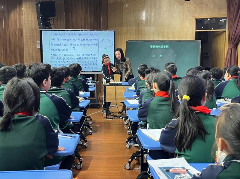 特級教師楊惠娟名師工作室團隊帶來三節(jié)觀摩課,分別是南通市海門港新區(qū)實驗小學(xué)崔樹堂執(zhí)教的《成語中的度量衡》、南通市通源小學(xué)曹曉丹執(zhí)教的《古代的長度單位》、南通市海門區(qū)東洲小學(xué)朱淑云執(zhí)教的《時間里的中國》。這些課,巧妙鏈接數(shù)學(xué)、語文、歷史、科學(xué)等學(xué)科,既培養(yǎng)學(xué)生的數(shù)學(xué)思維能力,又滲透歷史思辨與科學(xué)精神,助力學(xué)生感悟中華文化底蘊,提升綜合素養(yǎng)。
