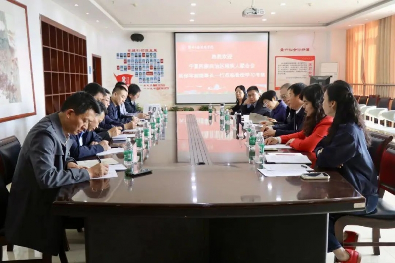 4月8日上午,寧夏回族自治區(qū)殘疾人聯(lián)合會(huì)副理事長(zhǎng)吳保軍,寧夏回族自治區(qū)教育廳職成處二級(jí)調(diào)研員范占平,寧夏民族職業(yè)技術(shù)學(xué)院黨委委員、副院長(zhǎng)馬忠穎,石嘴山工貿(mào)職業(yè)技術(shù)學(xué)院黨委委員、副院長(zhǎng)董學(xué)仁等一行七人到鄭州工程技術(shù)學(xué)院特殊教育學(xué)院考察交流,河南省殘疾人聯(lián)合會(huì)二級(jí)巡視員劉耀東、理事扶萍,鄭州工程技術(shù)學(xué)院副校長(zhǎng)楊慶年以及特殊教育學(xué)院領(lǐng)導(dǎo)班子全程參加。