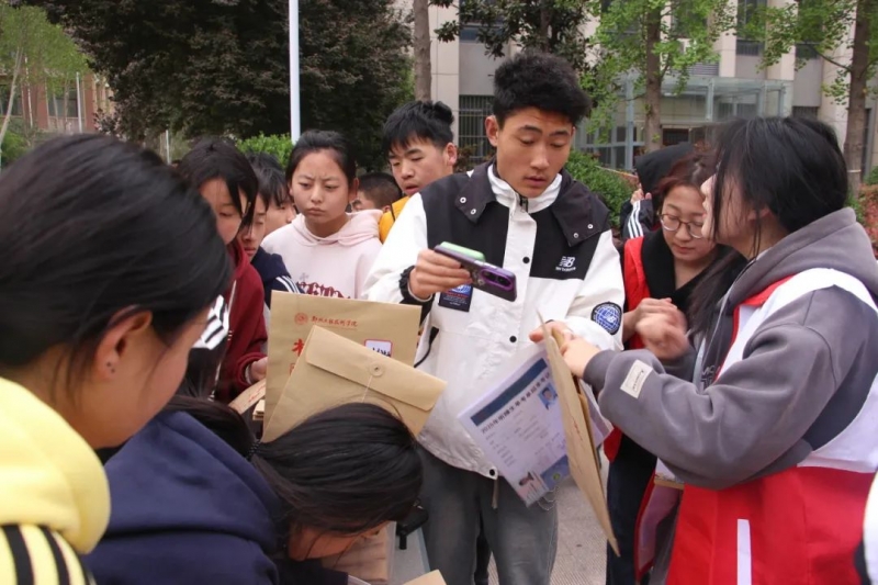 在考試過(guò)程中,各個(gè)考場(chǎng)紀(jì)律嚴(yán)明,秩序井然。為更好地完成招生工作,考前,鄭州工程技術(shù)學(xué)院召開(kāi)考務(wù)工作會(huì),安排部署考務(wù)工作,并對(duì)監(jiān)考老師進(jìn)行嚴(yán)格培訓(xùn)。為幫助考生順利完成考試,每個(gè)考場(chǎng)兩個(gè)監(jiān)考老師中均配一名專業(yè)手語(yǔ)翻譯,監(jiān)考老師宣布考試紀(jì)律、提醒考生考試時(shí)間全部使用手語(yǔ)完成,實(shí)現(xiàn)了無(wú)障礙溝通。考場(chǎng)外,手語(yǔ)翻譯專業(yè)學(xué)生組成了志愿者服務(wù)隊(duì),引導(dǎo)考生入場(chǎng),幫助考生解決臨時(shí)遇到的問(wèn)題;考試全程配備校醫(yī),應(yīng)對(duì)突發(fā)情況,并設(shè)置送考教師和家長(zhǎng)休息室,為考生及家長(zhǎng)提供貼心的服務(wù)。