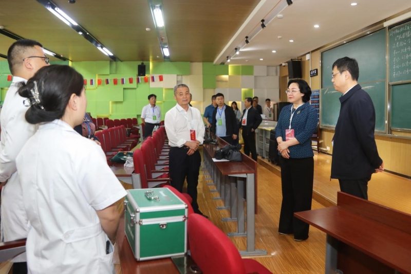 呂村一行深入考務(wù)指揮室、考務(wù)辦和考場(chǎng)實(shí)地檢查考試組織、考場(chǎng)秩序、考風(fēng)考紀(jì)及應(yīng)急保障措施等工作情況,并對(duì)進(jìn)一步提升考試組織工作提出指導(dǎo)意見。