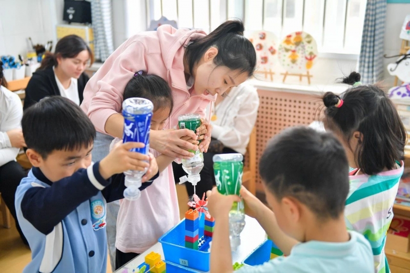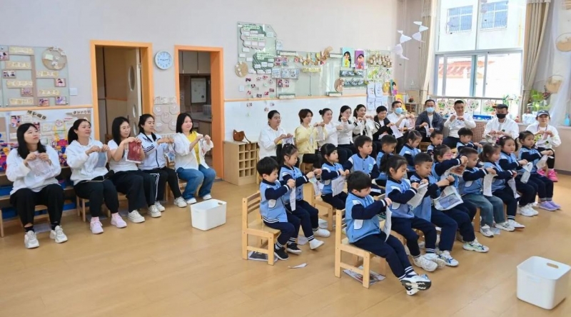濮陽市市直幼兒園還圍繞五大領(lǐng)域,精心設(shè)計科學(xué)探索、數(shù)學(xué)認(rèn)知、藝術(shù)創(chuàng)想、語言表達(dá)和生活實踐等八個主題教學(xué)活動,通過“師幼互動+親子共聯(lián)”模式構(gòu)建多維成長空間。例如,“會跳舞的泡泡”“神奇水車”系列科學(xué)小課堂,以趣味實驗激發(fā)幼兒觀察力與探究欲,讓科學(xué)思維在輕松氛圍中自然萌芽生長;通過點數(shù)花瓣匹配數(shù)字卡片,抽象的符號在花朵折紙中具象化;“報紙演奏會”“自然風(fēng)鈴”突破傳統(tǒng)的教學(xué)模式,利用生活中常見的材料激發(fā)幼兒想象力;在“神奇種子店”中,幼兒邊創(chuàng)作邊講述種子生長的故事,將語言表達(dá)與生命教育自然融合……