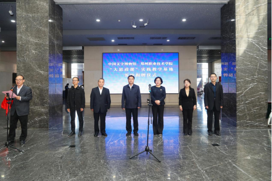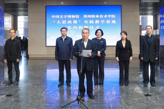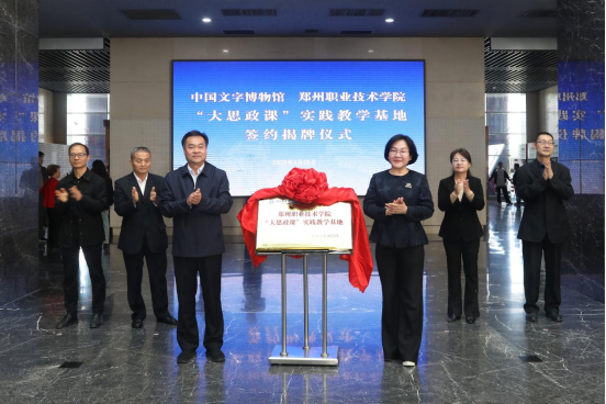 鄭州職業(yè)技術(shù)學(xué)院黨委書(shū)記呂村與中國(guó)文字博物館黨委書(shū)記、常務(wù)副館長(zhǎng)寧紅亮共同為“鄭州職業(yè)技術(shù)學(xué)院‘大思政課’實(shí)踐教學(xué)基地”揭牌