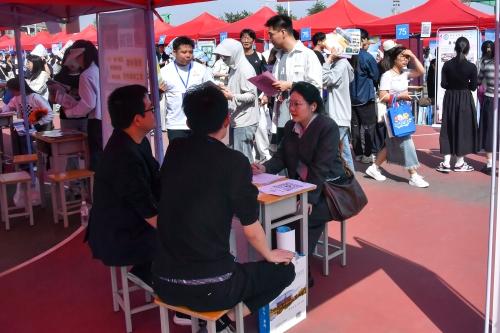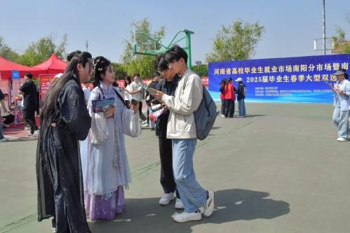 4月25日,南陽師范學院在中區(qū)籃球場舉辦河南省畢業(yè)生就業(yè)市場南陽分市場暨南陽師范學院2025屆畢業(yè)生春季大型雙選會。副校長冷楓、創(chuàng)新創(chuàng)業(yè)學院和各二級學院主要負責同志、就業(yè)專干到雙選會現場了解用人單位2025屆校招需求和對已實習就業(yè)學生的評價反饋,精準推介學校畢業(yè)生。