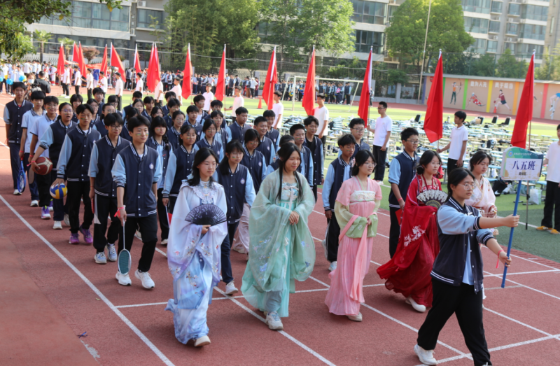 開幕式在莊嚴(yán)的國旗方隊(duì)、彩旗方隊(duì)入場中拉開帷幕,各班級(jí)方陣邁著整齊有力的步伐依次入場,他們精神抖擻,口號(hào)響亮,展現(xiàn)出冠軍中學(xué)南校區(qū)學(xué)子的昂揚(yáng)斗志與蓬勃朝氣。有的班級(jí)身著特色服裝,用獨(dú)特的造型和精彩的表演展現(xiàn)班級(jí)文化;有的班級(jí)揮舞著彩旗,寓意著對運(yùn)動(dòng)的熱愛和對勝利的追求。每個(gè)方陣都獨(dú)具匠心,班級(jí)特色展示精彩紛呈,成為學(xué)校操場上一道亮麗的風(fēng)景線。