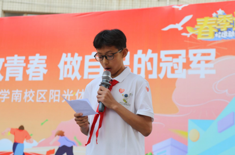 鄭州冠軍中學(xué)教育集團(tuán)黨委副書記張啟文致開幕辭。張書記強(qiáng)調(diào)了體育運(yùn)動(dòng)對于學(xué)生身心健康和全面發(fā)展的重要性,鼓勵(lì)同學(xué)們積極參與體育節(jié)的各項(xiàng)活動(dòng),在運(yùn)動(dòng)中挑戰(zhàn)自我、超越自我,培養(yǎng)堅(jiān)韌不拔的意志品質(zhì)和團(tuán)結(jié)協(xié)作的精神。同時(shí),張書記也希望同學(xué)們能夠通過這次體育節(jié),充分享受運(yùn)動(dòng)帶來的快樂,展現(xiàn)出冠軍中學(xué)南校區(qū)學(xué)子的風(fēng)采。