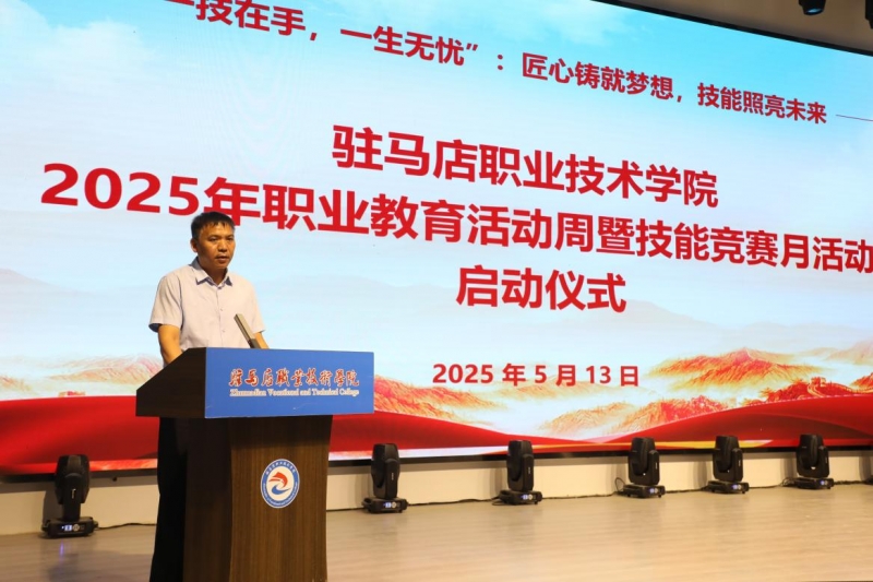 5月13日,駐馬店職業(yè)技術(shù)學(xué)院2025年職業(yè)教育活動周暨技能競賽月活動啟動儀式在北校區(qū)藝術(shù)樓報告廳舉行。校長宋華民、副校長李鳳霞,相關(guān)單位以及各二級學(xué)院負(fù)責(zé)人、部分師生代表300余人參加啟動儀式。啟動儀式由副校長李鳳霞主持。