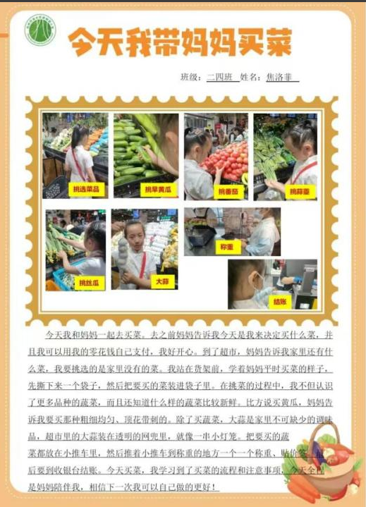 孩子們通過自主買菜的過程不僅是增近了親子關(guān)系,更是在這一過程中體會到了每天可口飯菜背后的勞動與不易。學(xué)習(xí)如何挑選每樣食物拓展了孩子們的生活技能,自主買菜結(jié)賬鍛煉了孩子們的表達與交流,每一筆的消費也讓孩子們對錢的使用有了具體的概念。