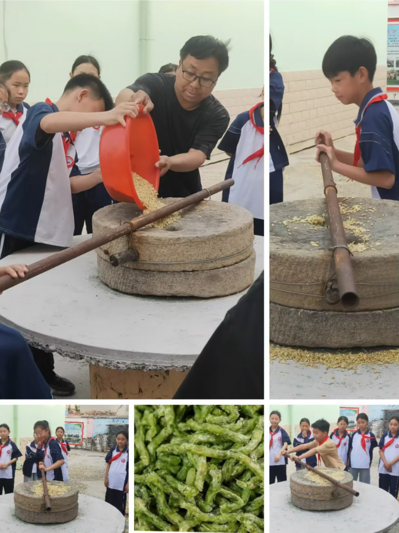 在校長岳保奇的指導下,孩子們揮鐮割麥、搓穗脫粒、熬煮麥仁、制作傳統(tǒng)美食“碾轉(zhuǎn)”,在泥土與麥香中感受農(nóng)耕文化,體悟“粒粒皆辛苦”的真諦。