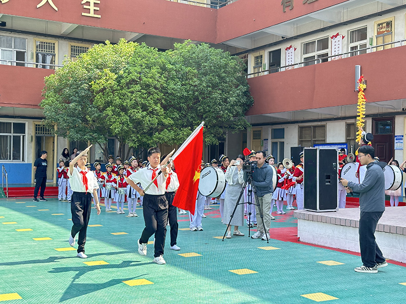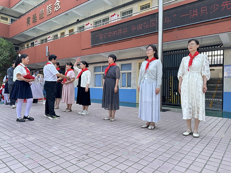 活動(dòng)現(xiàn)場(chǎng),伴隨著鼓號(hào)隊(duì)鏗鏘的《出旗曲》劃破長(zhǎng)空,全體師生面向少先隊(duì)旗莊嚴(yán)行禮。出旗手邁著矯健的步伐,新隊(duì)員的眼中寫(xiě)滿(mǎn)了期待與自豪。在《中國(guó)少年先鋒隊(duì)隊(duì)歌》的激昂旋律中,少先隊(duì)員的歌聲穿透云霄,新隊(duì)員們挺直脊梁,用稚嫩卻堅(jiān)定的童聲唱響對(duì)組織的忠誠(chéng)。