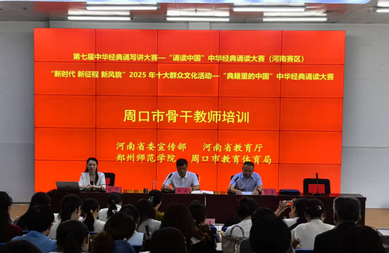 為進一步開展第七屆中華經(jīng)典誦寫講大賽之“誦讀中國”中華經(jīng)典誦讀大賽,6月11日,一場旨在提升經(jīng)典誦讀教學(xué)水平、助力中華優(yōu)秀傳統(tǒng)文化傳承的骨干教師培訓(xùn)會在周口市第三實驗學(xué)校成功舉辦。來自周口市各縣市區(qū)、市直各學(xué)校的百余名骨干教師參加此次培訓(xùn),為周口市經(jīng)典誦讀教育注入新活力。