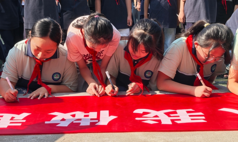 在學(xué)生代表的帶領(lǐng)下,全體學(xué)生莊嚴(yán)宣誓,有序地在橫幅上簽下自己的名字。有的學(xué)生神情嚴(yán)肅,一筆一畫寫得格外認(rèn)真;有的學(xué)生一邊簽名,一邊和身邊的小伙伴小聲交流,說以后一定會遵守防溺水要求。整個簽名過程莊重而有序,展現(xiàn)出學(xué)生對防溺水安全的重視。