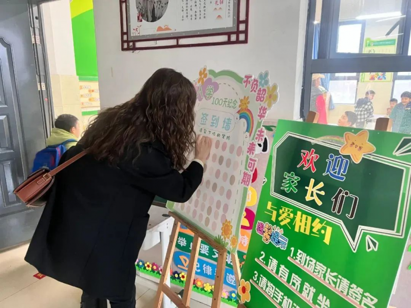(一)精心籌備:營造沉浸式體驗(yàn)氛圍。活動(dòng)前,各班級(jí)教師圍繞“快樂百日”主題打造特色教室。黑板布置、墻面文化、空間裝飾、門口細(xì)節(jié)皆藏巧思,從班級(jí)成長足跡展示到百天成果陳列,滿溢育人溫度,為家長營造沉浸式參與氛圍。