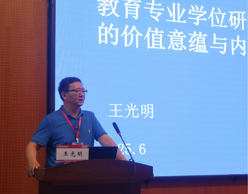 主旨報告上半場,第十三屆全國人大常委會委員、中國教育學會副會長、長江教育研究院院長兼華中師范大學國家教育治理研究院院長周洪宇教授作了題為《加快建設教育強國的綱領性文件——<教育強國建設規(guī)劃綱要(2024—2035年)>解讀》的報告,對《綱要》頒布實施的時代背景、重大意義、總體要求、關鍵任務、組織保障及貫徹落實《綱要》的若干建議等方面進行解讀。魯東大學二級教授、安徽師范大學原副校長朱家存教授作了《義務教育階段素質精良的教師隊伍形象》報告,從義務教育階段教師的使命責任、教育情懷與品德、關鍵能力和素養(yǎng)談對“素質精良”的理解與認識。重慶市教育科學研究院院長、二級教授、國特專家蔡其勇教授作了《卓越教師培養(yǎng)的范式創(chuàng)新與實踐路徑探討》的報告,從理論基礎與國際經驗借鑒、時代需求與政策導向、本碩貫通培養(yǎng)模式的核心優(yōu)勢、創(chuàng)新實踐路徑的系統(tǒng)化建構、典型實踐案例分析等方面呈現(xiàn)了卓越教師培養(yǎng)的新范式。天津市教育科學研究院副院長王光明教授作了《教育專業(yè)學位研究生實踐成果的價值意蘊與內涵特征》的報告,從《關于加快推動博士研究生教育高質量發(fā)展的意見》等政策角度強調學位實踐成果的重要性,并論述學位實踐成果的內涵及特征,對于教育專業(yè)學位研究生的培養(yǎng)具有啟發(fā)意義。上半場主旨報告由《河南教育》(教師教育)主編、河南省教師教育專委會秘書長、河南省樹人教育交流中心主任韓玉兵主持。