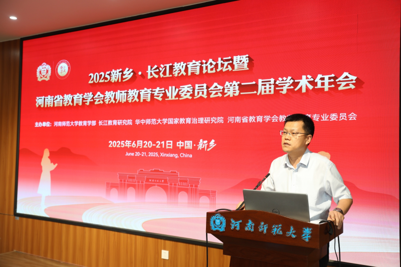 6月21日,“新鄉(xiāng)·長江教育論壇暨河南省教育學會教師教育專業(yè)委員會2025年第二屆學術年會”在河南師范大學東校區(qū)舉行。本次論壇由河南師范大學、河南省教育學會指導,河南師范大學教育學部、長江教育研究院、華中師范大學國家教育治理研究院、河南省教育學會教師教育專業(yè)委員會共同承辦。來自全國各地30余所高等院校、科研機構、期刊報社、中小學校的200余專家學者及碩博研究生參加本次會議。河南省教育學會教師教育專業(yè)委員會理事長、河南師范大學教育學部部長羅紅艷教授主持本次開幕式。