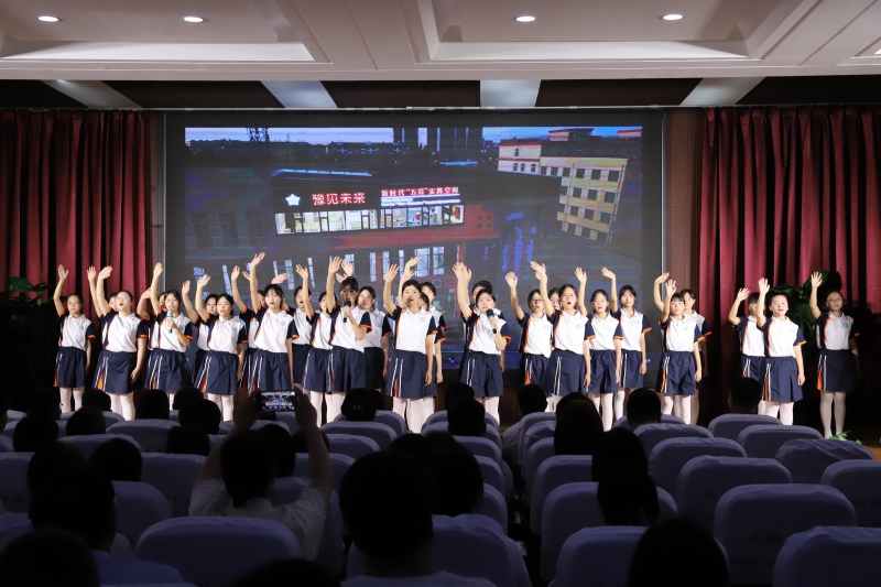 “黃河故道流淌夢(mèng)想,莊子故園溢滿(mǎn)書(shū)香。在這充滿(mǎn)希望的校園,我們求知進(jìn)取茁壯成長(zhǎng)……”6月27日上午,民權(quán)縣實(shí)驗(yàn)中學(xué)“豫見(jiàn)未來(lái)——新時(shí)代‘五育’實(shí)踐空間”啟用儀式上,由來(lái)自福州海關(guān)一級(jí)調(diào)研員、軍轉(zhuǎn)干部、支教美育教師韓俊飛作詞,著名作曲家蔣舟譜曲,民權(quán)縣實(shí)驗(yàn)中學(xué)合唱社團(tuán)的孩子們演唱的《豫見(jiàn)夢(mèng)想之光》,深深打動(dòng)了參加活動(dòng)的300多位師生和學(xué)生家長(zhǎng)代表,以及福州海關(guān)和民權(quán)縣委縣政府領(lǐng)導(dǎo)、縣教育部門(mén)負(fù)責(zé)人、愛(ài)心企業(yè)代表。