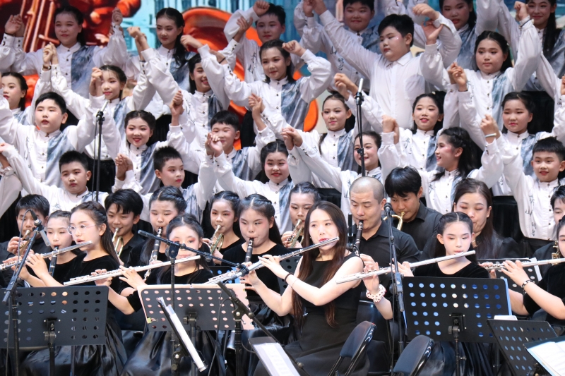 管樂團(tuán)、弦樂團(tuán)和合唱團(tuán)的大小音樂家們分別進(jìn)行精彩展示后,再次同臺合作演繹《如愿》《歌唱祖國》,引發(fā)全場觀眾共鳴合唱,將音樂會推向高潮,“歌唱我們親愛的祖國,從今走向繁榮富強(qiáng)”的歌聲唱響對祖國深深的愛戀和最深切的熱愛與祝福,也為音樂會畫上完美的句號。